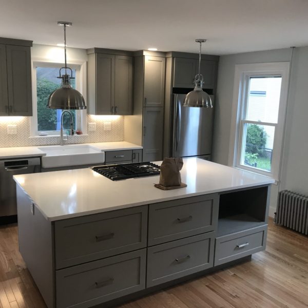 Project Information: The wall between kitchen and existing pantry was removed to create a larger kitchen, and the kitchen was completely updated with new appliances, cabinets, flooring, lighting, and windows.